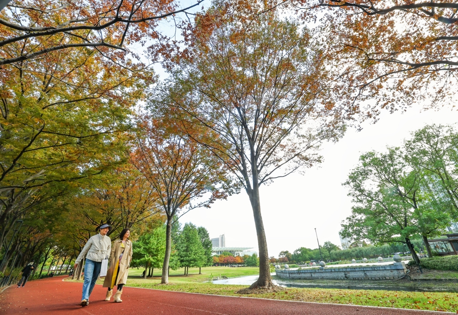 深秋时节中博证券,城市公园褪去绿意,换上斑斓盛装。在松江区中央公园,金黄的榉树、橙红的枫叶层层叠叠,阳光透过枝叶洒下斑驳光影。地面铺满松软的落叶,踩上去沙沙作响。