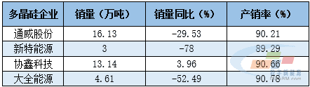 上半年,四家多晶硅企业共销售多晶硅36.88万吨,同比下滑37.4%。