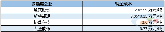表4:2025年上半年多晶硅四巨头现金成本(不含税)