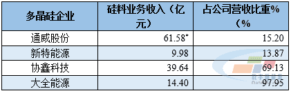 大全能源销量达4.6万吨,位列第三,硅料业务收入19.64亿元;